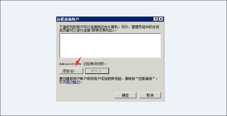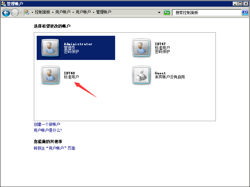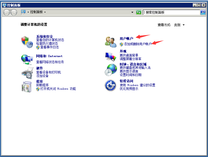 1,打开服务器左下角的控制面板,找到用户账户-添加用户账户