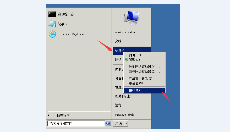 7,返回服务器主屏幕,点击左下角打开计算机属性