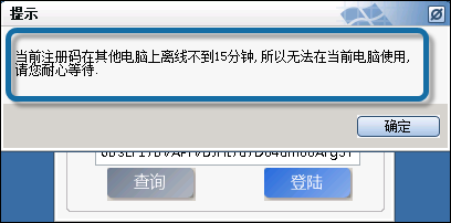 【当前注册码在其他电脑上离线不到15分钟,所以无法在当前电脑使用,请您耐心等待】